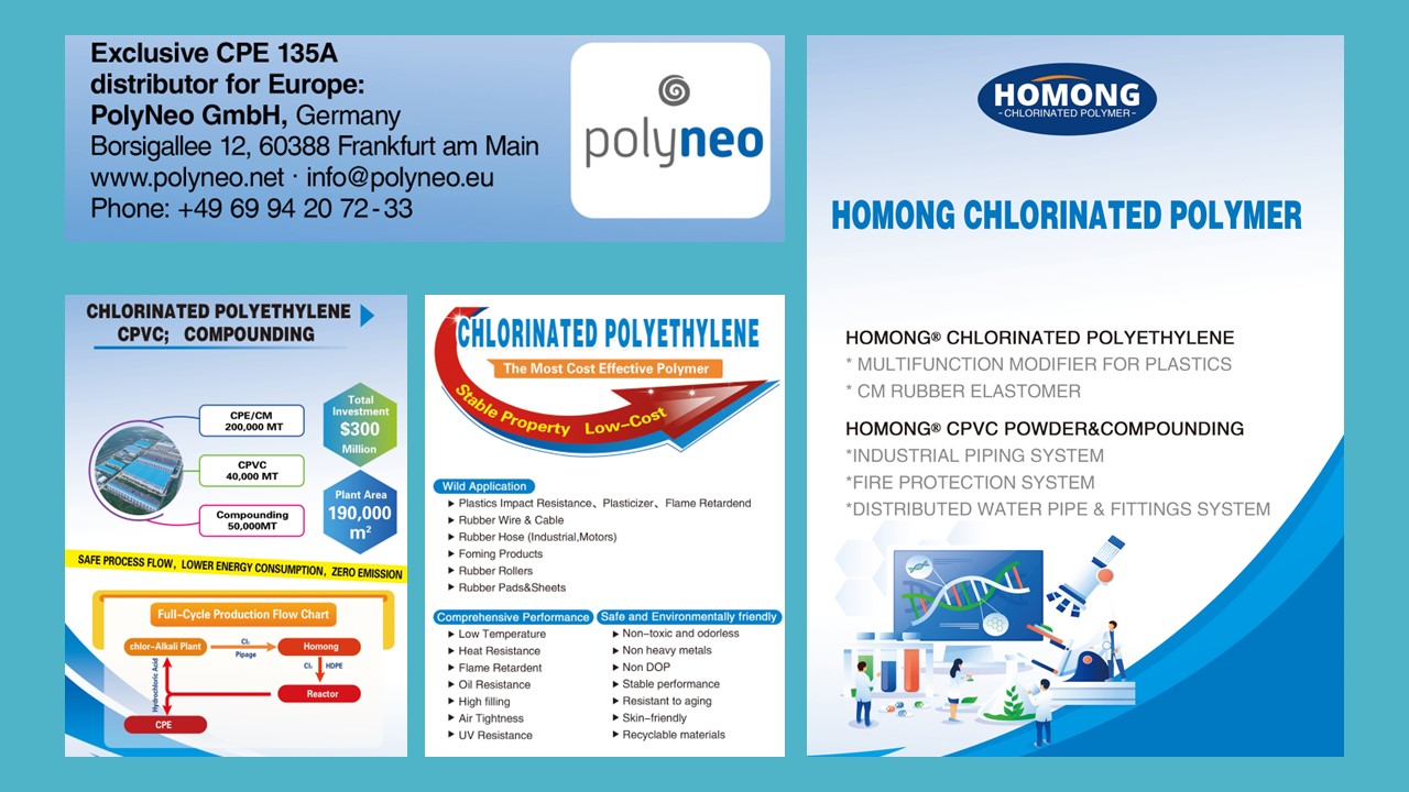„Zusammen mit unserem Partner, der chinesischen Homong Chlorinated Polymer Co., Ltd., haben wir uns einem breiten Fachpublikum aus aller Welt vorgestellt. Als exklusiver Vertriebspartner für Homongs CPE 135A auf dem europäischen Markt haben wir so persönlich jede Menge interessante Kontakte geknüpft. Dabei konnten wir viele europäische Kunden sowohl von der Effizienz von Homongs Produktionsanlagen als auch von dem logistischen Konzept der PolyNeo GmbH überzeugen.“